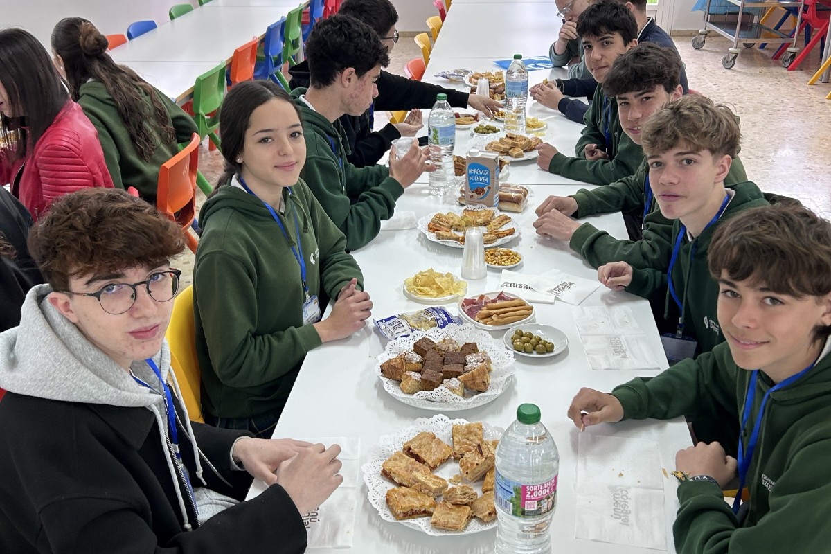 La aventura comenzó el lunes con una calurosa bienvenida. Tras recorrer nuestras instalaciones guiados por docentes del cole, los alumnos/as disfrutaron de una degustación de productos locales preparada con cariño por nuestras familias. Este primer contacto ya dejó ver la cercanía que reinaría durante toda la semana. La mañana concluyó con un taller sobre los Objetivos de Desarrollo Sostenible (ODS), marcando el carácter responsable del proyecto.